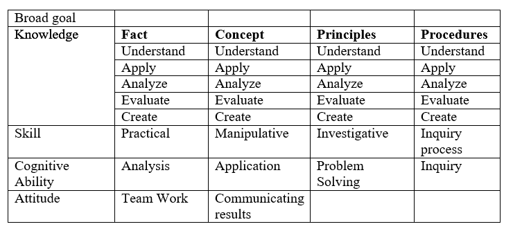 Broad goal – Develop knowledge - Concepts, principles and procedures