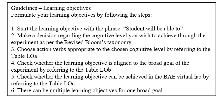 Before proceeding for the next step enter the Learning Objectives in the adjacent text box.