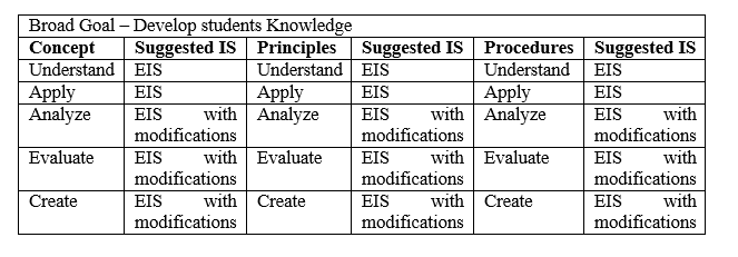Refer to the following table in order to make a decision regarding the selection of the Instructional Strategy depending on the broad goal of your experiment.